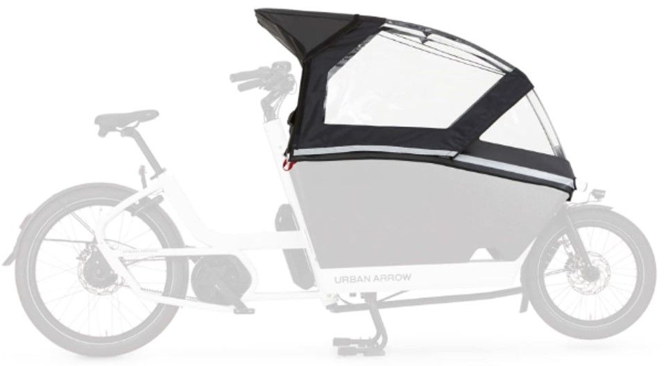 Don't worry about rain, "Raincover Plus" guarantees complete protection against wind and rain. With an easy-to-use design and roll-up side flaps, it's easy to quickly get on and off the cargo bike without having to remove it.